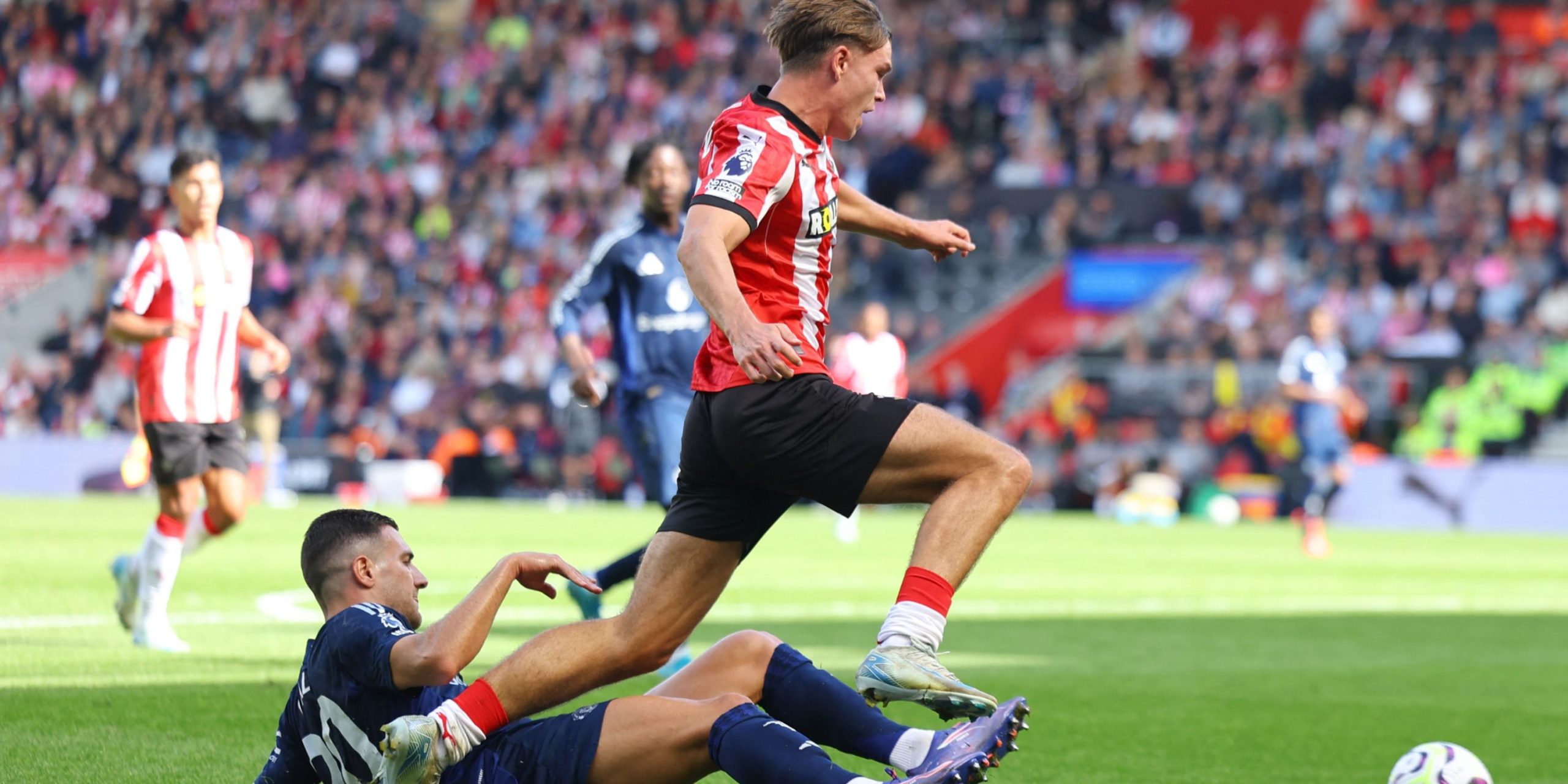 Saints initially got off to a promising start and even earned the chance to take a shock lead when the referee pointed to the spot following Diogo Dalot’s foul on youngster Tyler Dibling. The teenager did superbly to take the Manchester United fullback on before being rewarded for his efforts, only to see Cameron Archer’s attempt saved by Andre Onana just moments later.